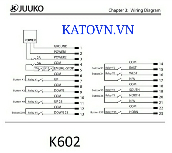 Sơ đồ đấu điện điều khiển từ xa juuko K602